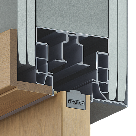 Пенал, предназначенный для установки двух полотен, сдвигающихся в центр, обрамлённых доборами и наличниками в оштукатуренный проём. Подходит для монтажа в стены толщиной до 150 мм. Может использоваться при новом строительстве или ремонте.