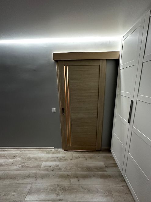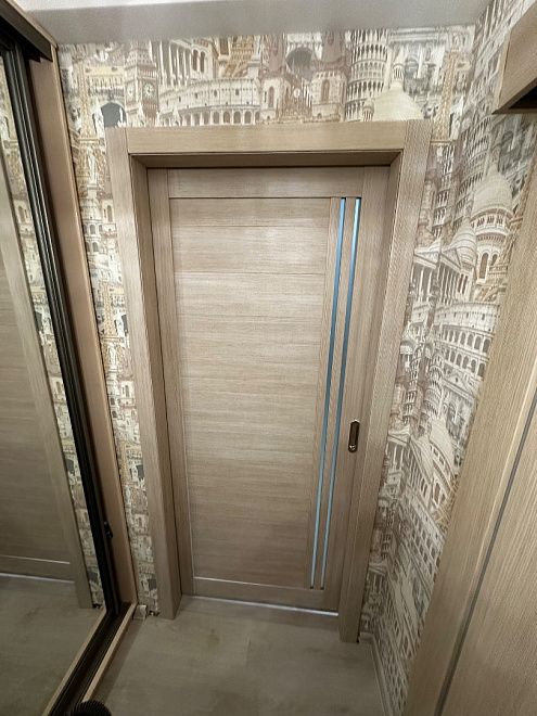 ПО QuLine 8-3 Беленый дуб стекло белое раздвижная с установкой "под ключ" в Cанкт-Петербурге